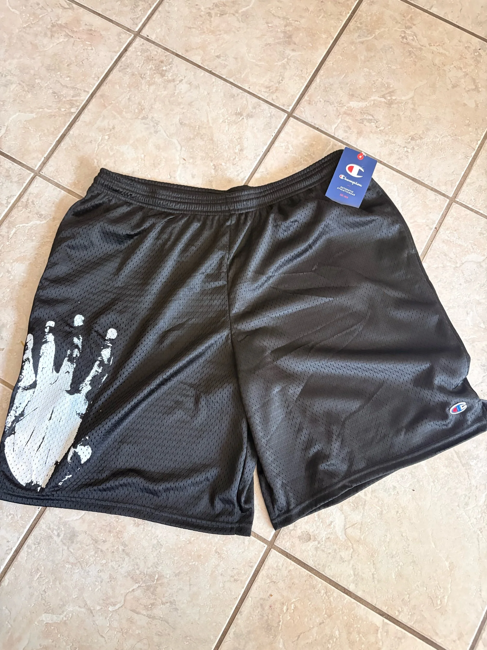 printed on champion mesh shorts